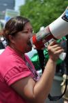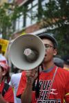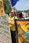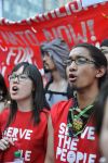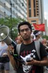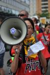 “Filipinos are here today because the US-NATO agenda seeks to intensify militarization in the Asia-Pacific region,” stated Bernadette Ellorin of BAYAN USA at the opening noon rally in Grant Park. “As I speak, the US is sending drones, nuclear warships, nuclear submarines, and more US troops to engage in military exercises in the South China Sea. They say this is to contain the threat of China, but that is a distortion.”