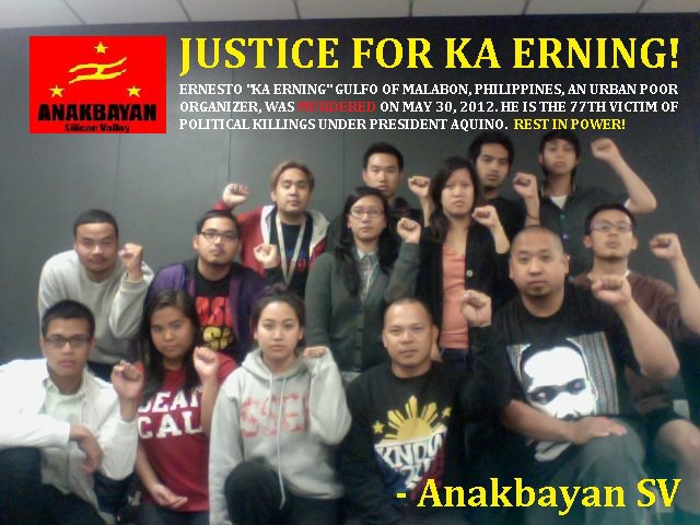 Anakbayan Silicon Valley commemorates the life of Ka Erning. We will continue to organize for genuine independence and democracy in the Philippines!