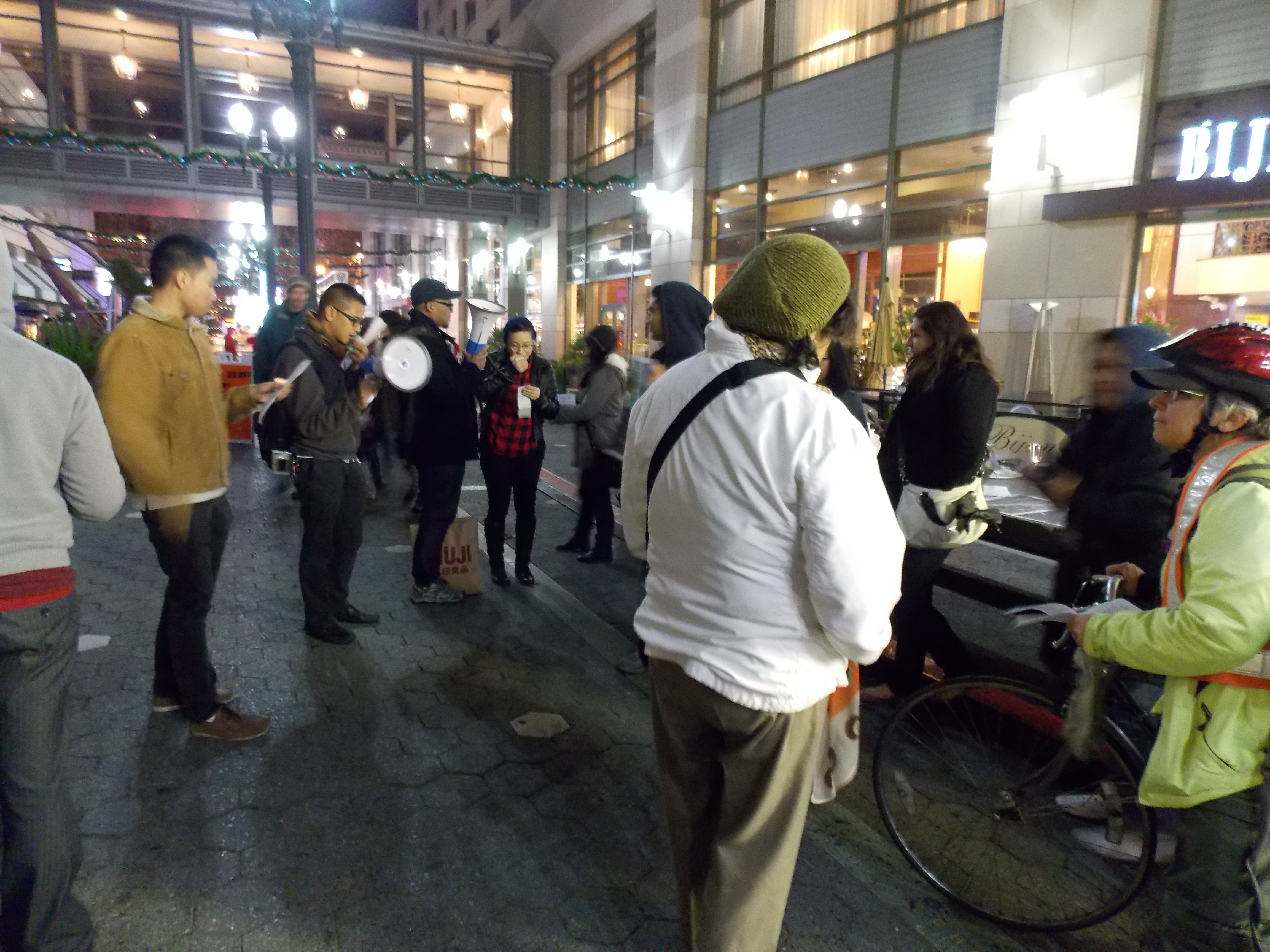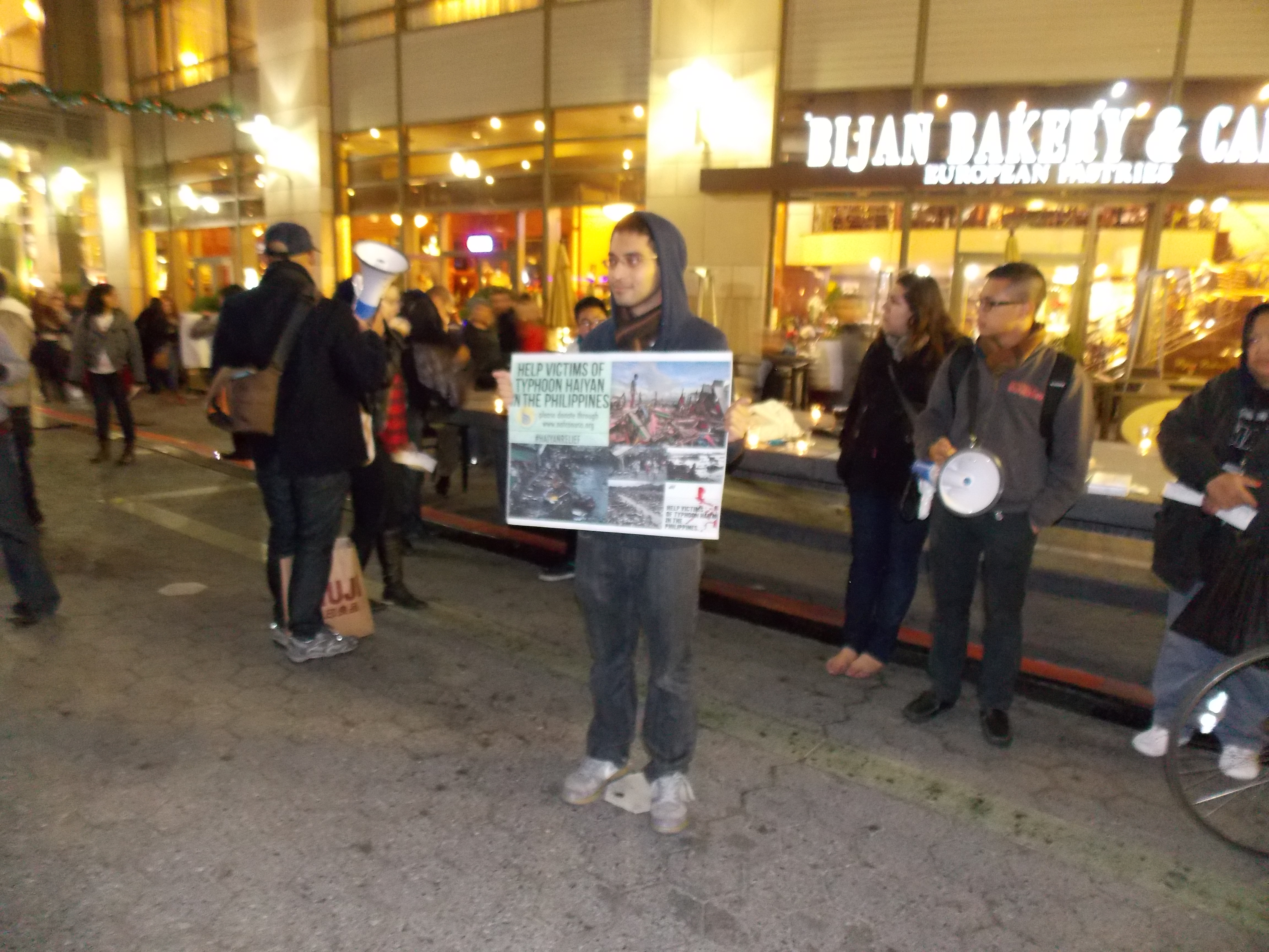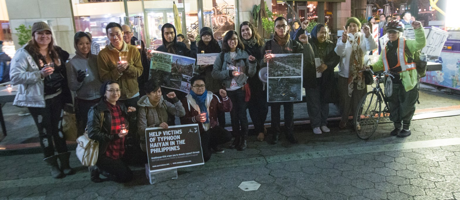 Wednesday 12/18 San Jose, –Members of Anakbayan Silicon Valley (ABSV) and BAYAN-USA gathered for a Candlelight Vigil to commemorate victims of U.S. militarization in the Philippines as well as oppose U.S. Secretary of State John Kerry’s visit to the Philippines this week. The Candlelight Vigil was held in Downtown San Jose with a program that included statements from BAYAN-USA, the Pilipino Association of Workers and Im/migrants (PAWIS), and the National Alliance for Filipino Concerns (NAFCON), which shed light on the true effects of U.S. militarization in the Philippines. The group also sang “Bayan Ko,” an iconic song symbolizing the Filipino people’s struggle for genuine freedom. Donations were also raised for the victims of Typhoon Haiyan/Yolanda.