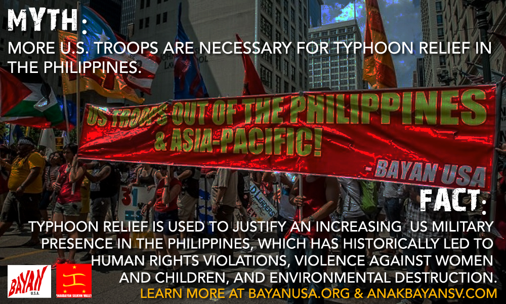 FACT: Typhoon relief is used to justify an increasing U.S. military presence in the Philippines, which has historically led to human rights violations, violence against women and children, and environmental destruction.